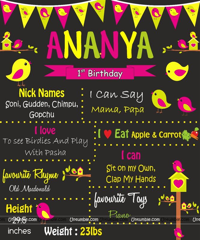 Personalized birthday chalkboard posters made of foam board. Custom printed with the info about your child provied in the form provided.