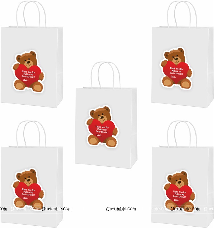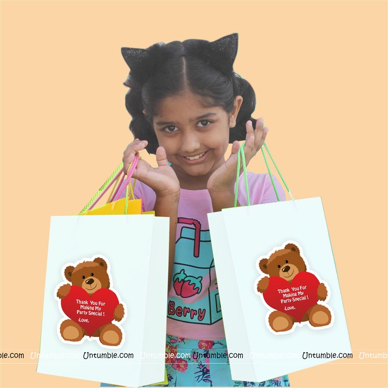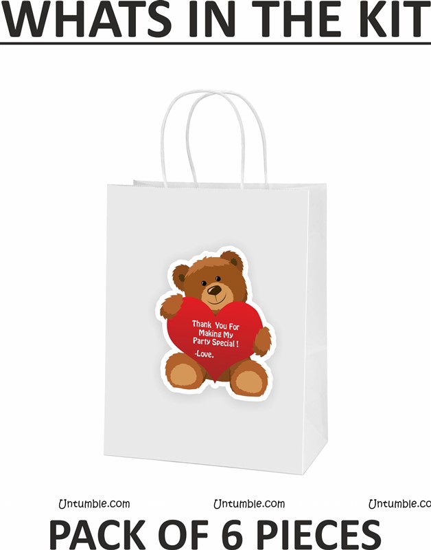 Customized return gift bag based on the theme. White bag with a theme based customized sticker on the front side.