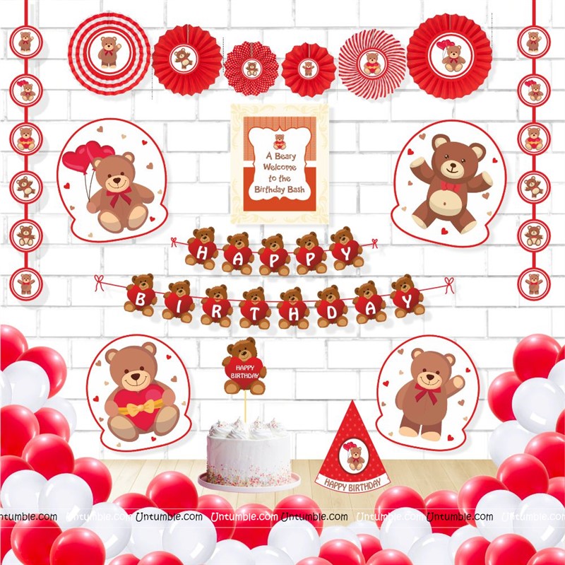 Teddy Theme Bunting , Topper and Balloons