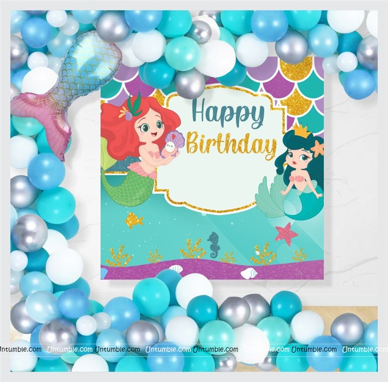 Mermaid theme Super saver birthday decoration kit (Pack of 58 pieces)