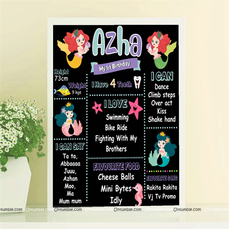 Personalized birthday chalkboard posters made of foam board. Custom printed with the info about your child provied in the form provided.