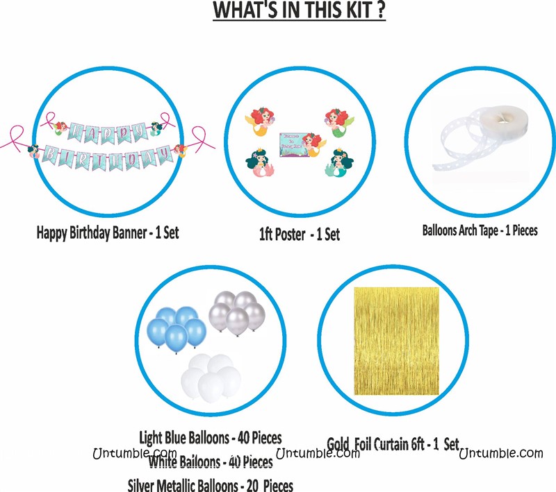 Mermaid theme Super saver birthday decoration kit (Pack of 58 pieces)