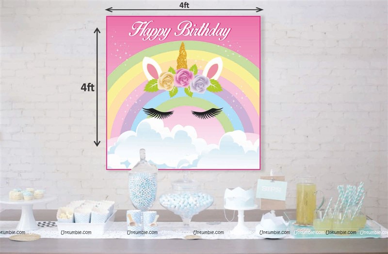 Unicorn Theme Backdrop 4 feet x 4 feet, Pack of 1