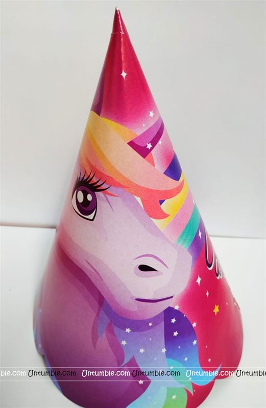 Cone shaped birthday hats for kids and adults made from high quality paper board and elastic.